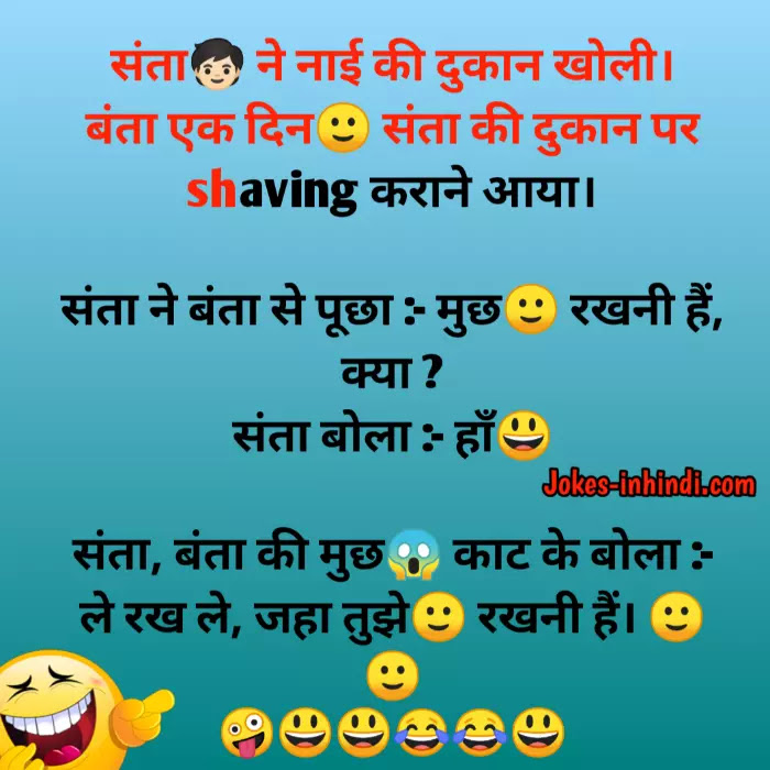 संता बोला :- हाँ😃संता, बंता की मुछ😱 काट के बोला :-