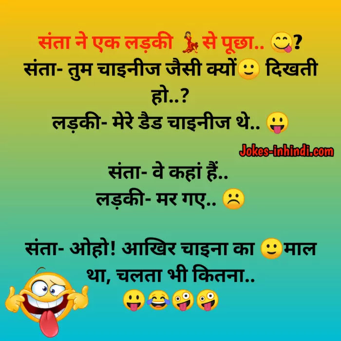 लड़की- मेरे डैड चाइनीज थे.. 😛संता- वे कहां हैं..