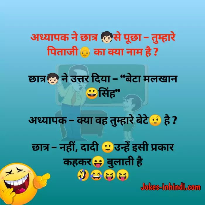 छात्र🧒🏻 ने उत्तर दिया – “बेटा मलखान 😀सिंह”
